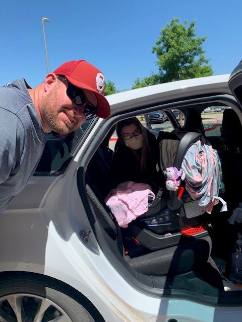 Trinite was scheduled to deliver her daughter, Moxlie, on April 20 at the Norman Regional Hospital. Norman Regional’s Maternal Child team learned of the positive test result as soon as Trinite and Justin did on April 19. This was Norman Regional’s first mom to come into Labor & Delivery with COVID-19 and the team knew communication would be incredibly important for this family, said Tonya Faires, RN, nurse manager.