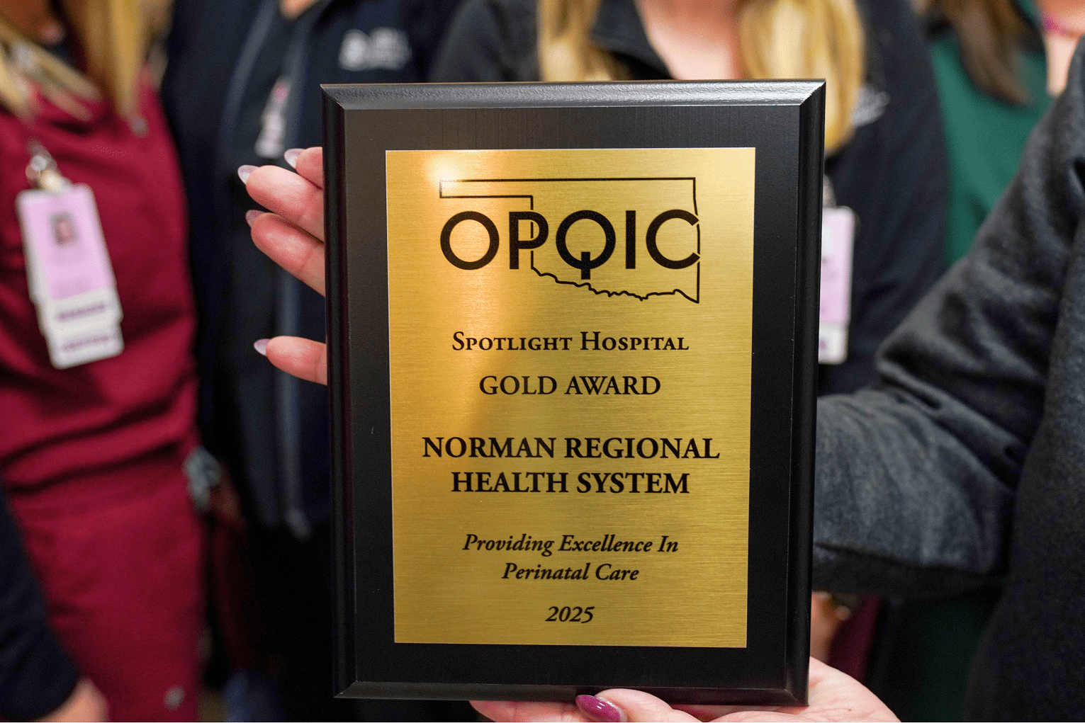 For the second year in a row, Norman Regional Health System has earned the Oklahoma Perinatal Quality Improvement Collaborative (OPQIC) Gold Award for Excellence in Perinatal Care. The achievement was announced at the 11th Annual OPQIC Summit in November in Oklahoma City, OK. Norman Regional was one of just eight birthing hospitals in Oklahoma to earn the top award this year, showing that the Gold Award for Excellence in Perinatal Care isn’t just a recognition, it’s a statement of trust.