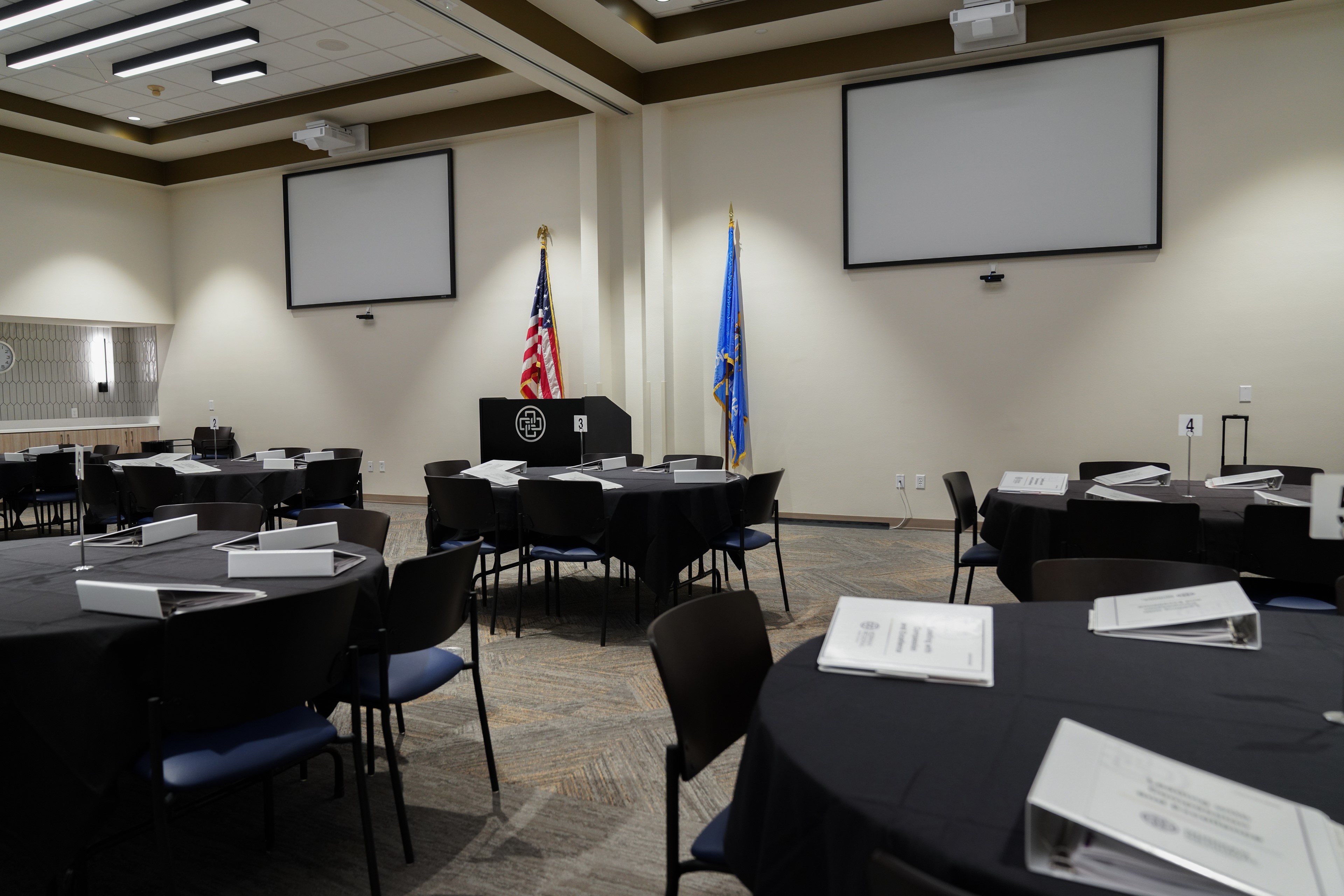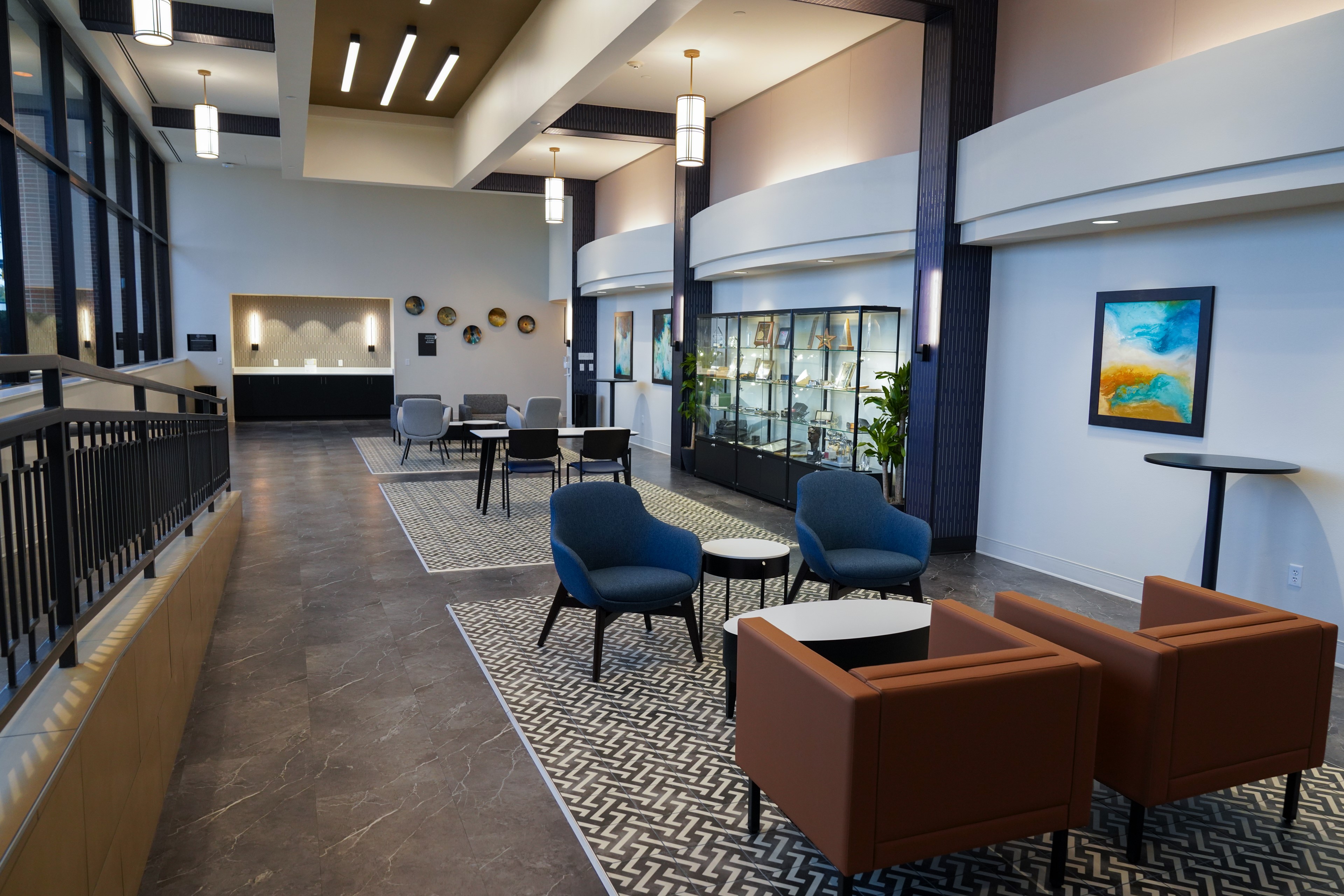 The Education Center at Porter Health Village is home to an auditorium, conference room, six classrooms with folding walls and a catering kitchen. The folding walls in the classrooms allow the meeting space to be configured anywhere from one large space to six individual classrooms.