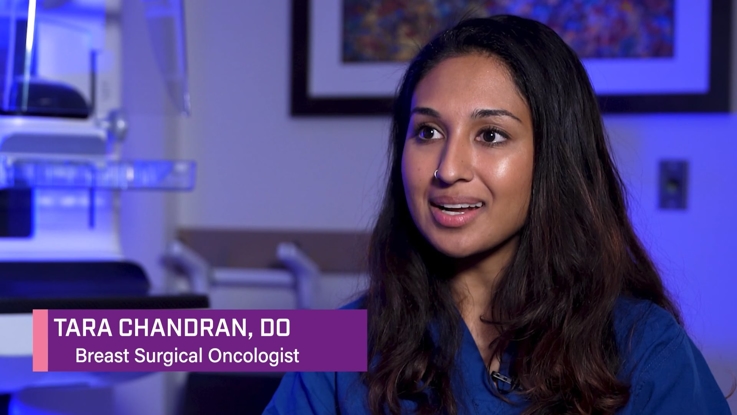 Tara Chandran, DO, is a board-certified general surgeon with specialized fellowship training in breast surgery. She completed her medical degree at Touro University California, followed by a residency at Henry Ford Macomb and a breast surgical oncology fellowship at the University of Kansas.